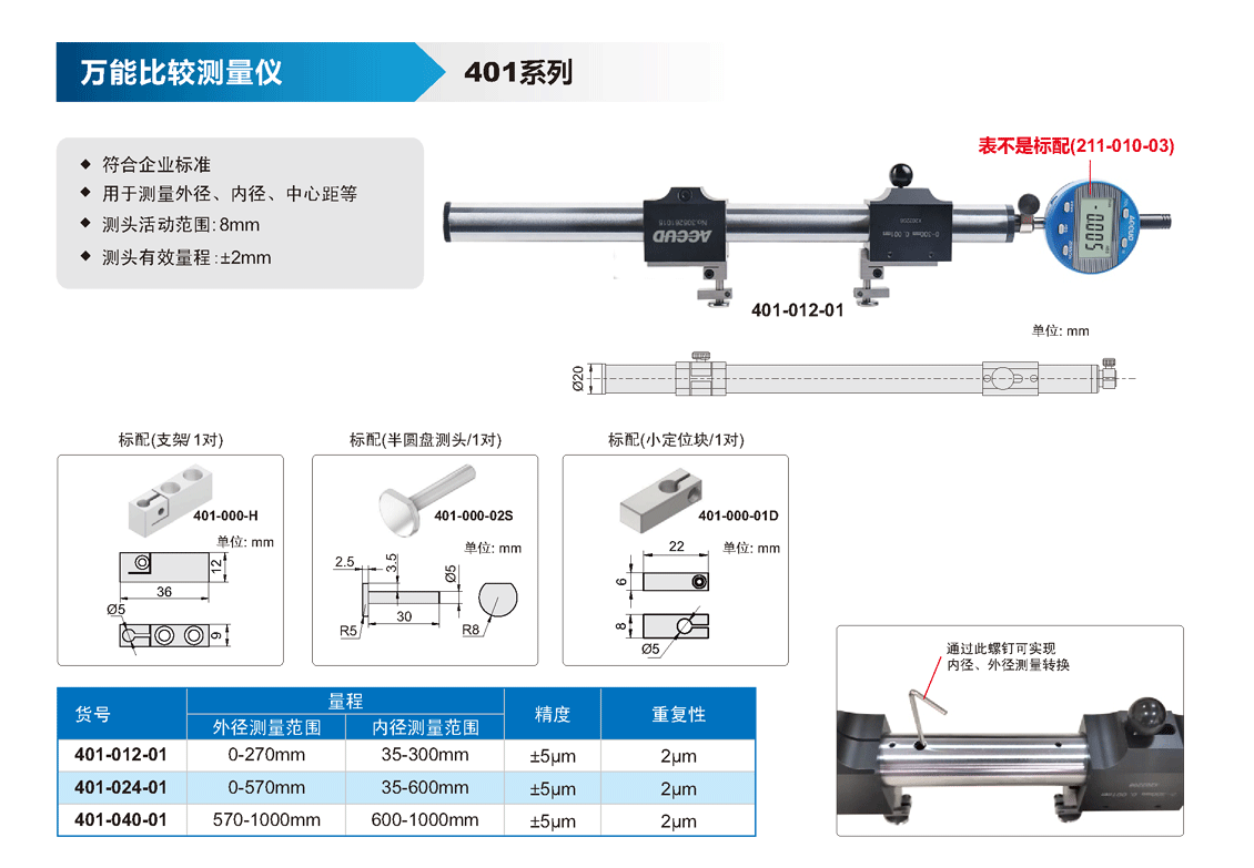 簡短描述: ? 符合企業(yè)標準 ? 用于測量外徑、內(nèi)徑、中心距等 ? 測頭活動范圍:8mm ? 測頭有效量程:±2mm