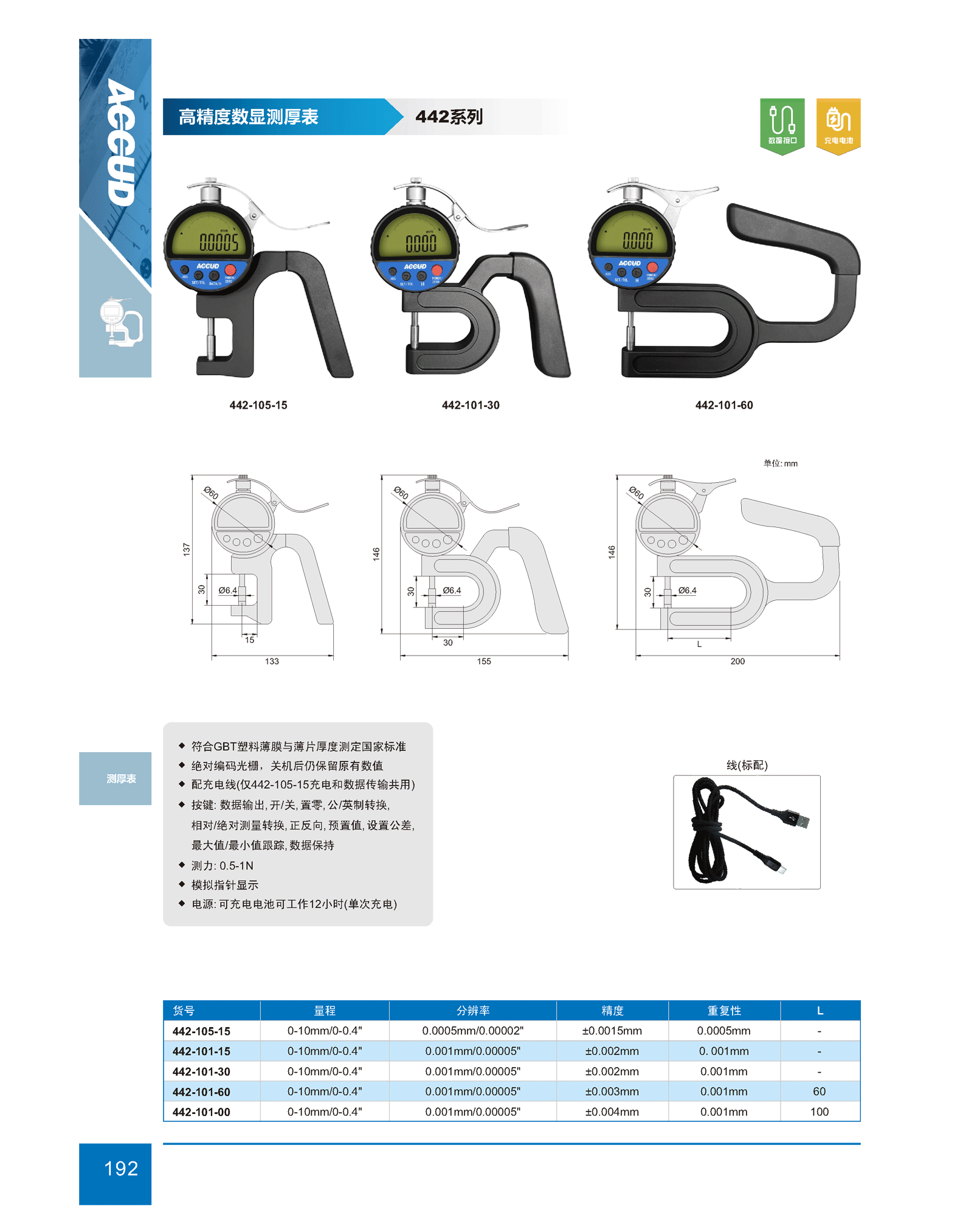 ? 配充電線(僅442-105-15充電和數(shù)據(jù)傳輸共用)