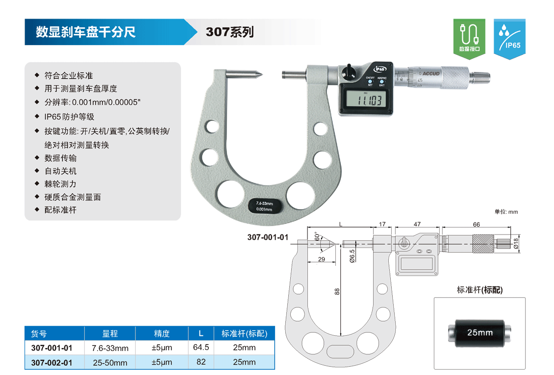 ? 按鍵功能: 開/關(guān)機(jī)/置零,公英制轉(zhuǎn)換 /