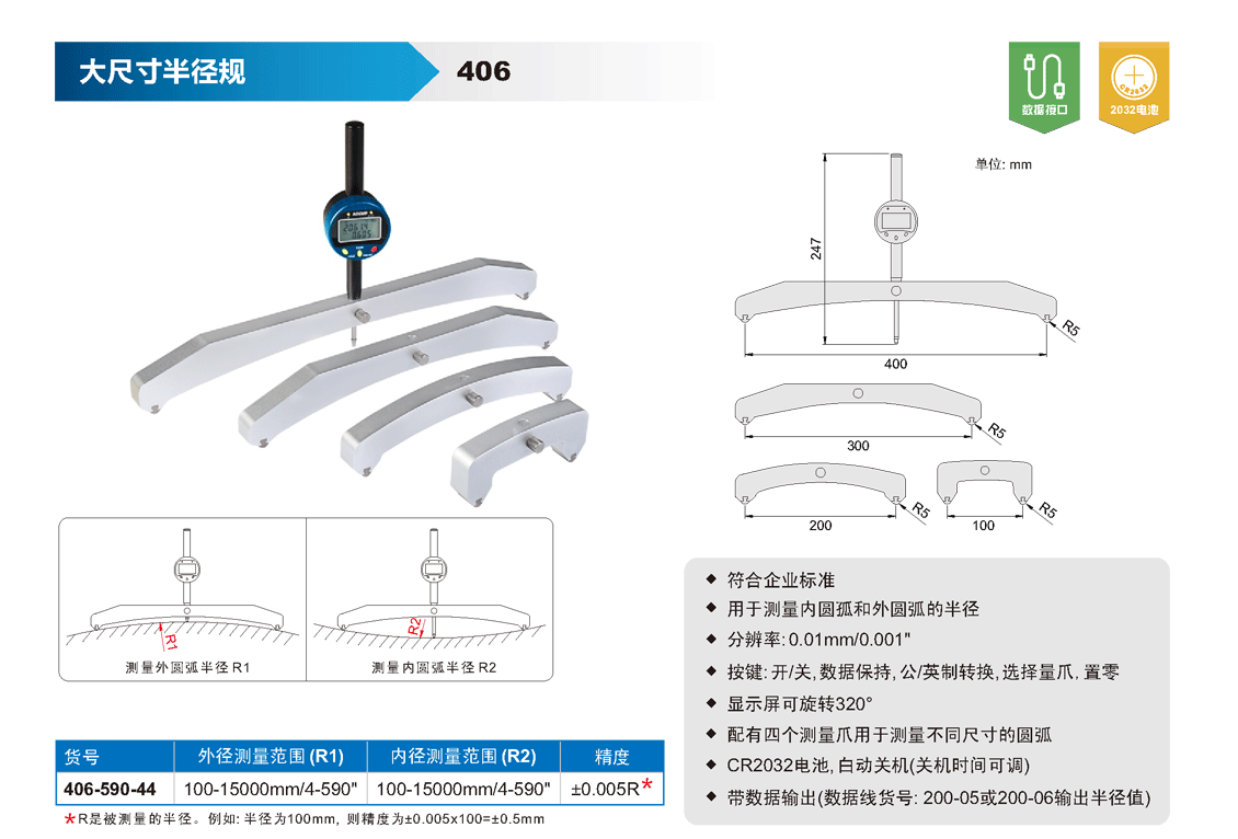 ? 帶數(shù)據(jù)輸出( 數(shù)據(jù)線貨號: 200-05或200-06輸出半徑值)